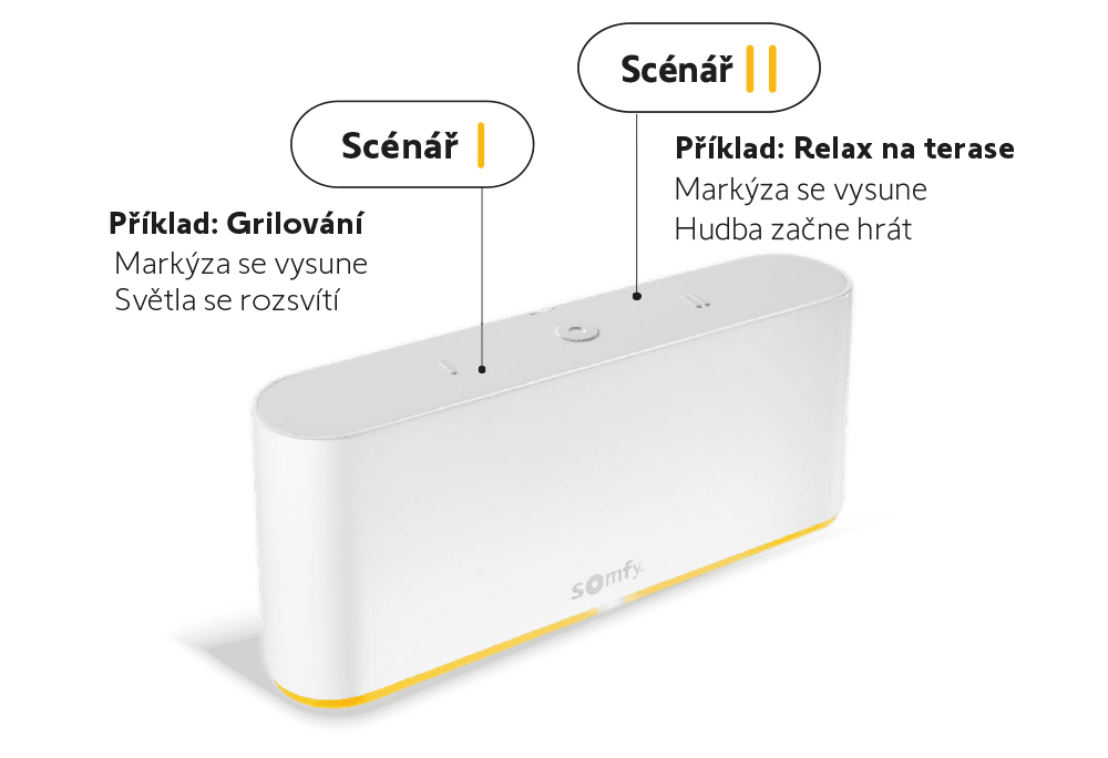 - Chytré ovládání od Somfy snadno napojíte na stínění, garážová vrata, světla a další zařízení.