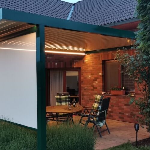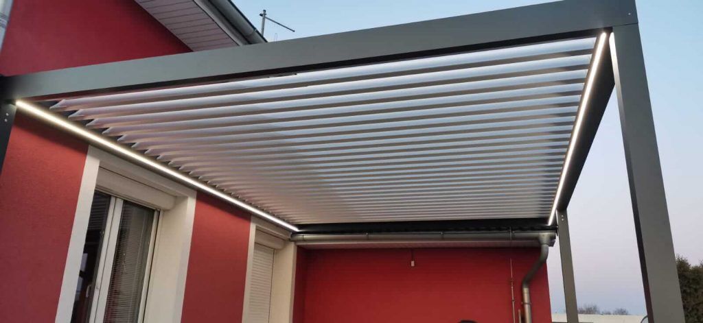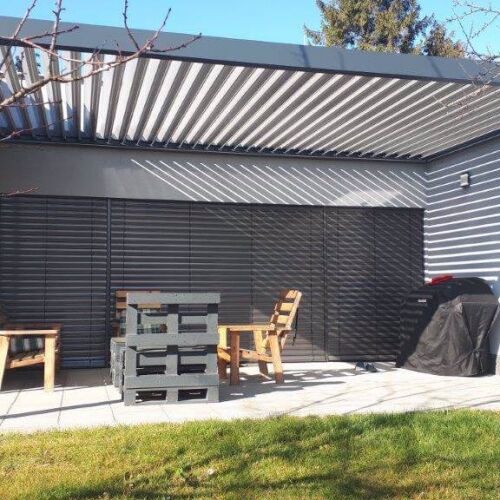 - Lamely pergoly se dají rozdělit do více nezávislých, samostatně ovladatelných, sekcí – lamely pak můžete řídit přesně podle potřeby stínění.