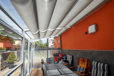 - Pustí světlo do oken, když chcete. Zatahovací střecha řeší nevýhodu pevného stínění, které stíní, i když zrovna nechcete.