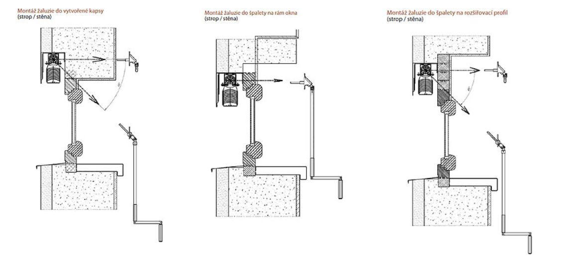 - Montáž na rozšiřovací profil okna (strop/stěna)